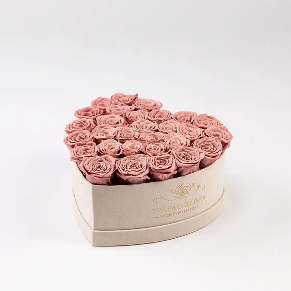 Celebrate love in its purest form with our Endless Love: 25-Rose Heart Box. This enchanting arrangement features 25 perfectly preserved roses, artfully arranged in a heart-shaped box that symbolizes eternal affection. Each rose is carefully selected and treated with advanced preservation techniques and premium dyestuff, ensuring that their vibrant color and velvety texture remain intact for years to come.